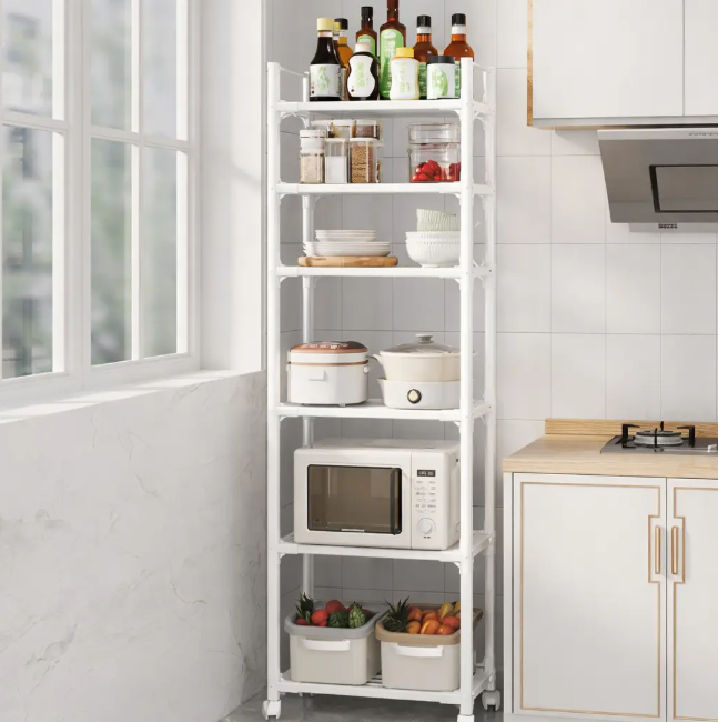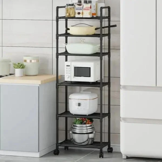 Багатоярусна полиця-етажерка на 6 рівнів — це універсальне рішення для організації простору на кухні, у ванній кімнаті, в спальні, офісі чи коморі. Міцна конструкція витримує побутову техніку, посуд, продукти та дрібні речі, допомагаючи зекономити місце й підтримувати порядок щодня.